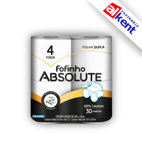 Papel Higiênico ABSOLUTE Fofinho FD Folha Dupla Pacote (4 rolos – 30m).