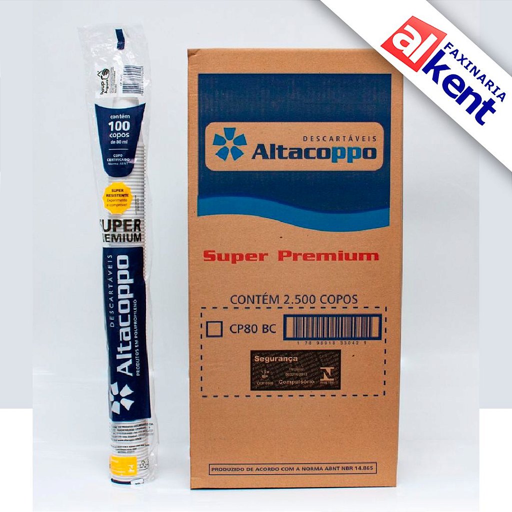 Copo Plástico Descartável PP Super Premium ALTACOPPO 80ml Cônico – Caixa com 2.500 unidades.