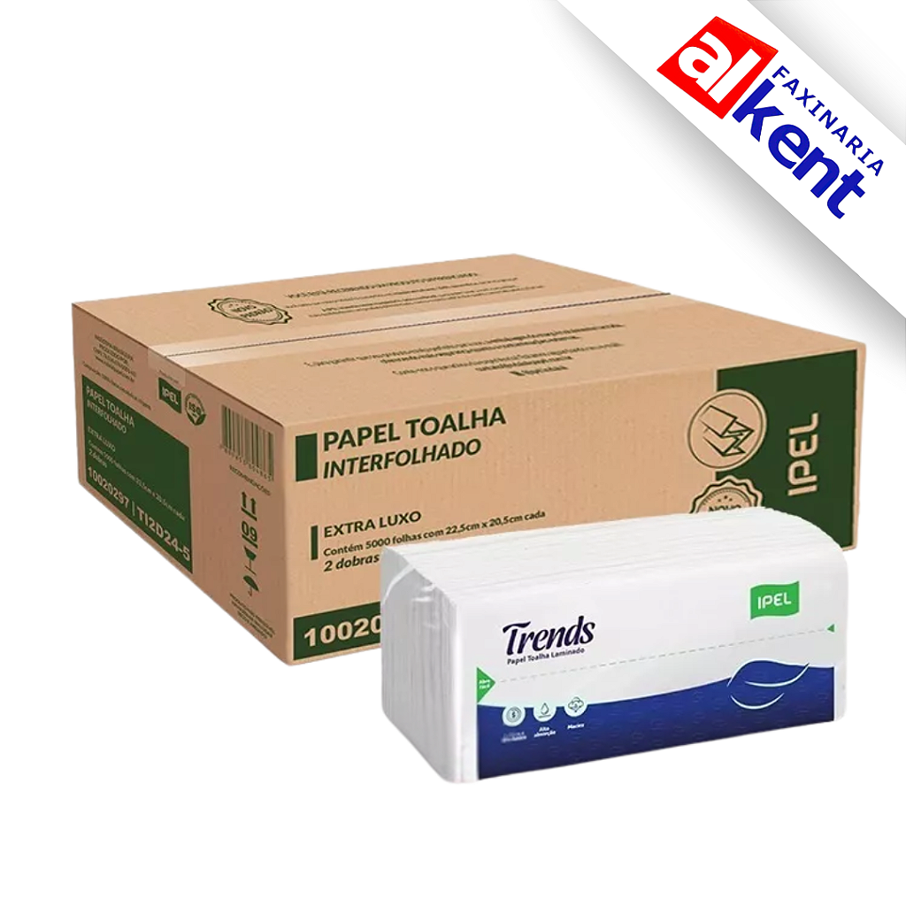 Papel Interfolhado TRENDS ELX 28gr FD Folha Dupla 100% Celulose Ipel Indaial 22×20 – Embalagens com250 ou 5.000 folhas.