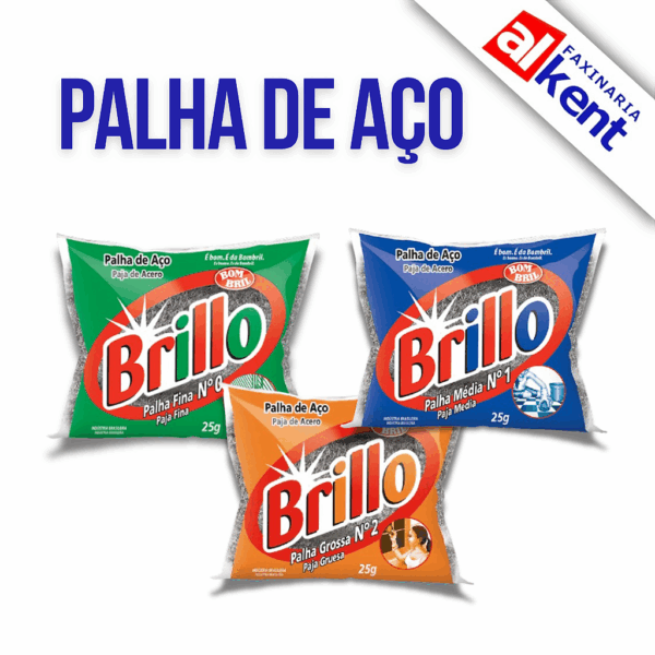 Palha de Aço Brillo – Fina (0), Média (1) e Grossa (2).
