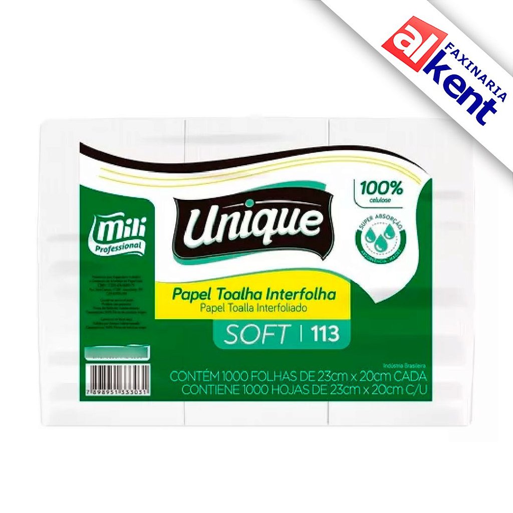 Papel Interfolhado Mili 113 SOFT 2 Dobras 100% Celulose 1.000 Folhas FS 20×23.