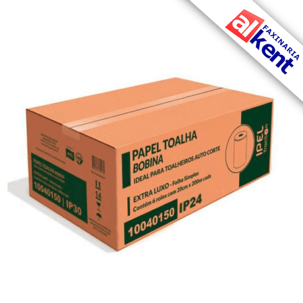 Papel Toalha Bobina Branco Traction IPEL Indaial IP24 FS Folha Simples 6x200m.