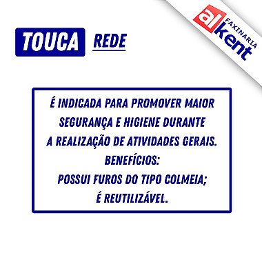 Indicada para a proteção da cabeça, redução da contaminação provocada pela queda de fios de cabelo em superfícies e para evitar o contato do cabelo com objetos que possam causar acidentes durante a realização de atividades em geral.